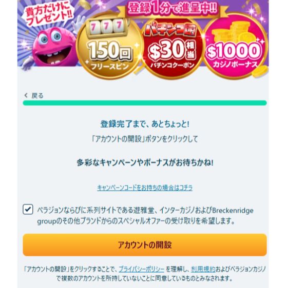 ✅当サイト限定のベラジョン キャンペーンコード